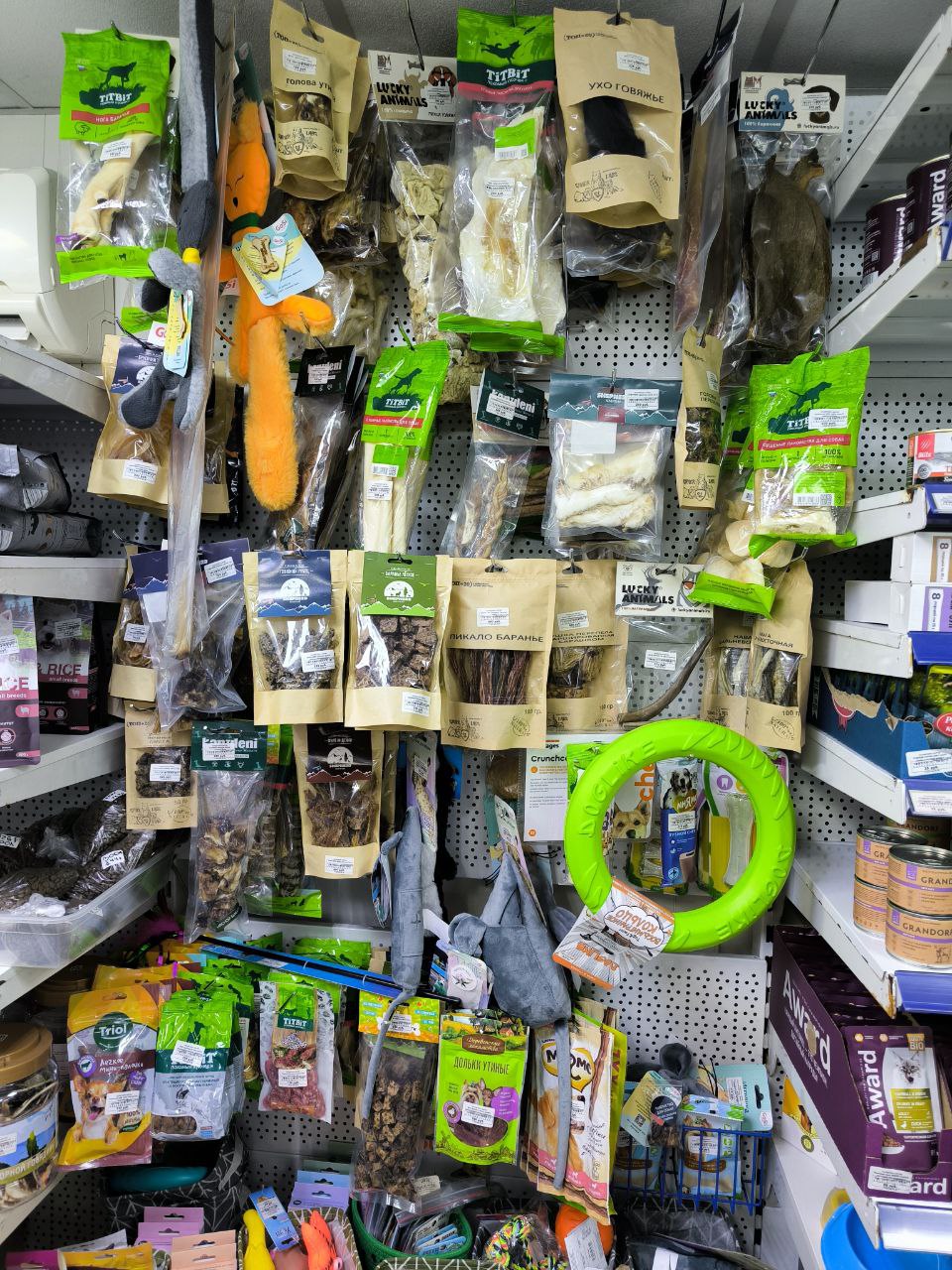Для четвероногих друзей вы найдете на полках магазина корма и лакомства на любой вкус. В ассортименте продукция таких производителей, как Royal Canin, AlphaPet, Blitz, Eravida, GRANDORF, NaturaPlan,Premier Cat, Brit, ZILLII, Деревенские лакомства, Деревня Муськино, X-CAT, Мнямс, Родные корма, AWARD, Prime Ever, SHEPHERD, TIT BIT, KANIDENI, Lucky Animals, NORD FARM, REXBURG, Snack Labs, TOP LAP, TRIOL, LUCKY DOG, PET MAFIA, ПЕППО, Пуффинкс, Секрет.